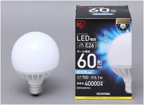 ・アイリスオーヤマ製 A形電球(品番:LDA)一般電球形、G形電球(品番:LDG)ボール電球形
