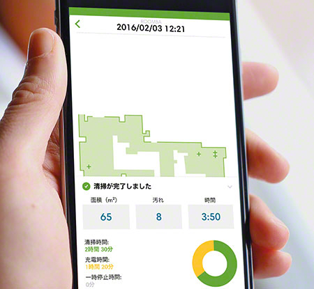 表示されたマップは拡大/縮小、スクロールするなどして、各部屋の清掃履歴を確認できます。