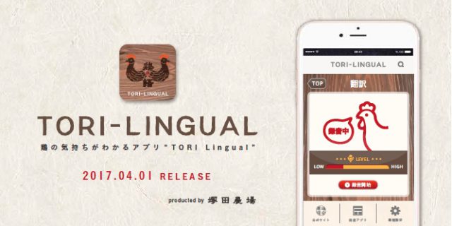 国内の鶏⾁⾷の中で1%の地鶏を全国の居酒屋で提供している塚田農場がついに鶏の気持ちがわかるアプリ「TORI Lingual」の開発に成功しました。