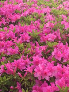 低い街路樹として、目立ちに目立つツツジ。