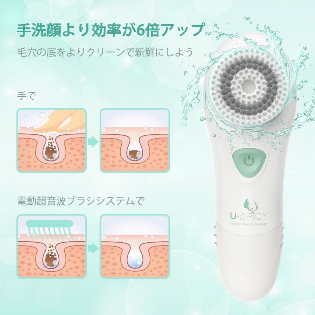 (株)ニアバイダイレクトジャパンより、お風呂で使える電動洗顔ブラシ『USpicy US-FS015JP』が、2599円(税込)にて販売中です。ブラシが回転するのではなく、超音波で振動することでお肌への負担を最小に軽減したモデルです。
