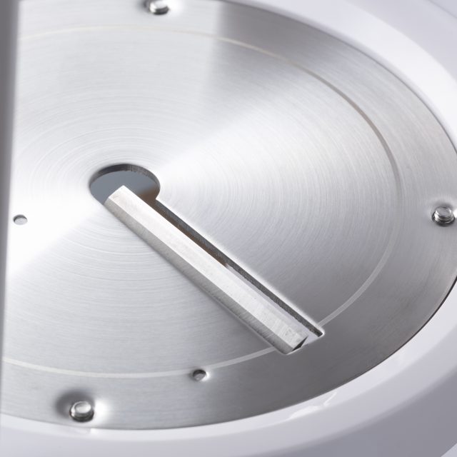 また、刃物メーカーならではのノウハウを生かし、均質に薄く削れる刃を採用することで、軽い力でも心地よい感覚で削ることができます。通常、ウォームギア内蔵型のかき氷器は業務用として採用されていますが、本モデルはご自宅用としても使用しやすいサイズ、かつレトロでスタイリッシュなデザインに仕上げました。