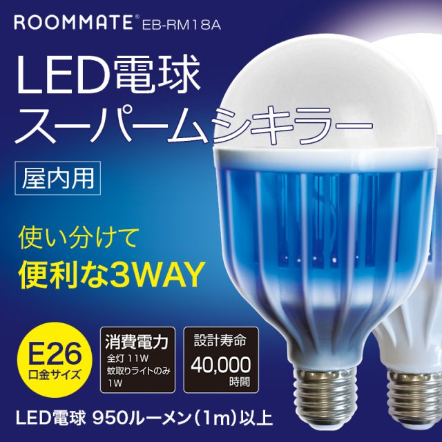 (株)イーバランス「ブランド名:ROOMMATE(ルームメイト)」から。「ROOMMATE LED電球 スーパームシキラー EB-RM18A」が発売されました