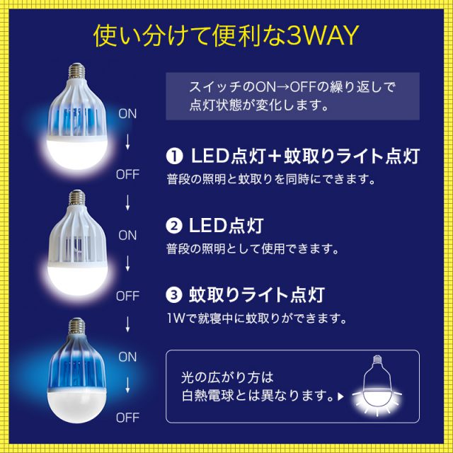 | LED点灯+蚊取りライト点灯 | 普段の照明と蚊取りを同時にできます。 |
