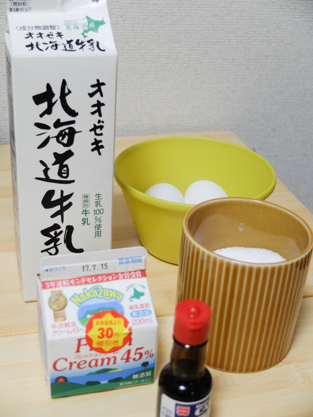 基本材料は、「牛乳」「卵」「砂糖」。
