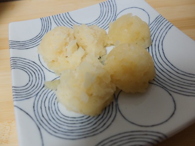 ただし、冷やすので、甘味は感じにくくなります。一番最初に作ったのはオレンジジュース。酸味は温度の影響を受けにくいですから、ジュースで飲んだ時と違い、酸っぱいシャーベットになりました。