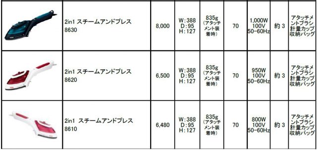 ■ティファールの2in1型の衣類スチーマーラインナップ