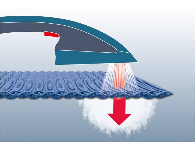 ■パワフル連続スチーム アイロンかけ面にポンプで水を送り続けることにより、最大25g/分×連続使用時間約16分!一度に大量のアイロン掛けが可能。