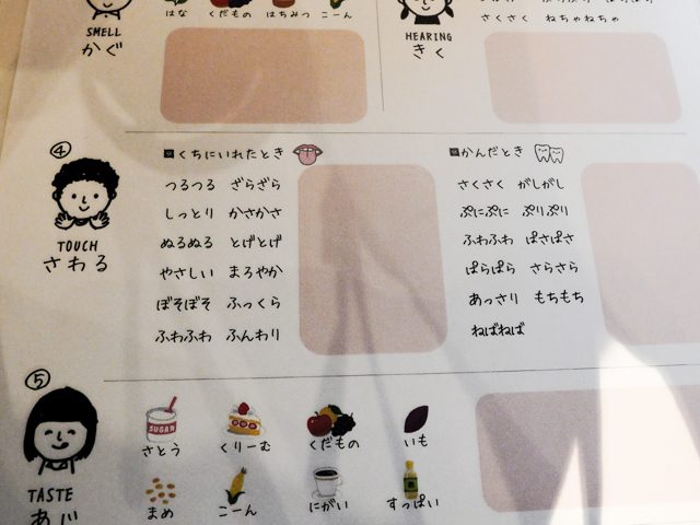 同じものは、子どもの評価シートの「さわる」「かんだとき」にあたります。