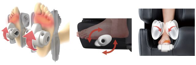 ■疲れやすい足裏を入念にほぐす「足裏つかみ指圧」 足裏へのマッサージを強化する新たなマッサージ機能「足裏つかみ指圧」を搭載。足首から甲を押さえるエアーバッグと足裏の専用ローラーを組み合わせて、足裏をつかんで指圧するようなマッサージを行います。専用ローラーは足裏のアーチに沿った形状で、土踏まずから足裏の外側にかけて伸ばし広げるようにほぐします。3段階の強弱調節が可能です。