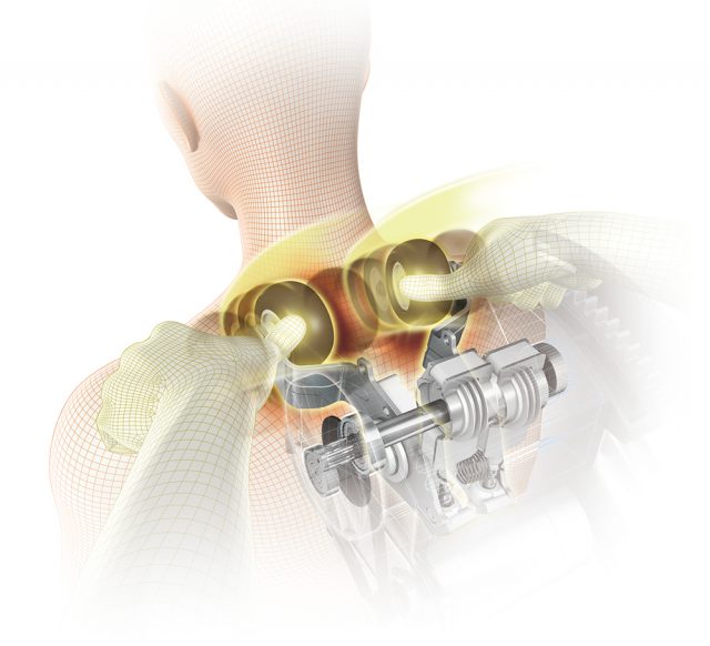 ■深く、繊細に、手技のようなもみ心地を実現する「深層 極メカPRO」 2つのもみ玉は業界最大となる約12.5cmの突出量で筋肉の深層にアプローチ。