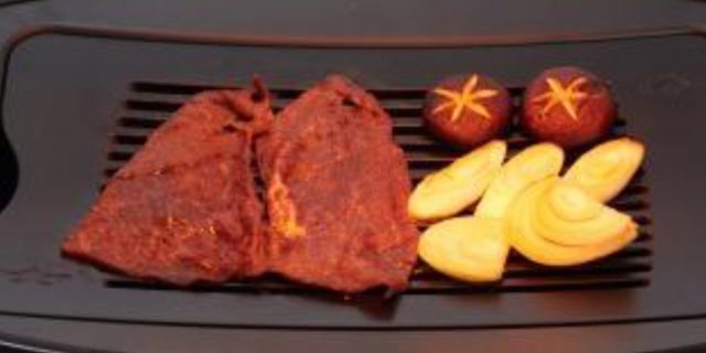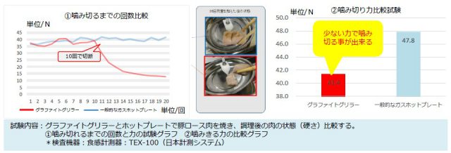 遠赤輻射熱はフライパン(伝導熱)とは異なり、 肉表面に余計な熱を与えず肉をふっくら焼き上げる効果があります。