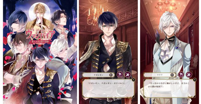 (参考)■『イケメンヴァンパイア◆偉人たちと恋の誘惑』本アプリは、 ヴァンパイアとして生まれ変わった、ナポレオン、モーツァルト、レオナルド・ダ・ヴィンチなど、歴史に名を残す偉人たち総勢12名が運命の恋の相手となり、「イケメンシリーズ」史上最も激しく甘いラブストーリーを描いています。