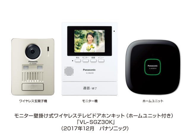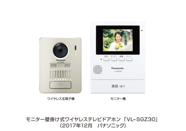 パナソニック(株)から、外出先でもスマートフォンで来客応対でき(※1)、無線接続により配線工事が不要なモニター壁掛け式ワイヤレステレビドアホンVL-SGZ30およびVL-SGZ30Kを、2018年2月22日に発売されます。