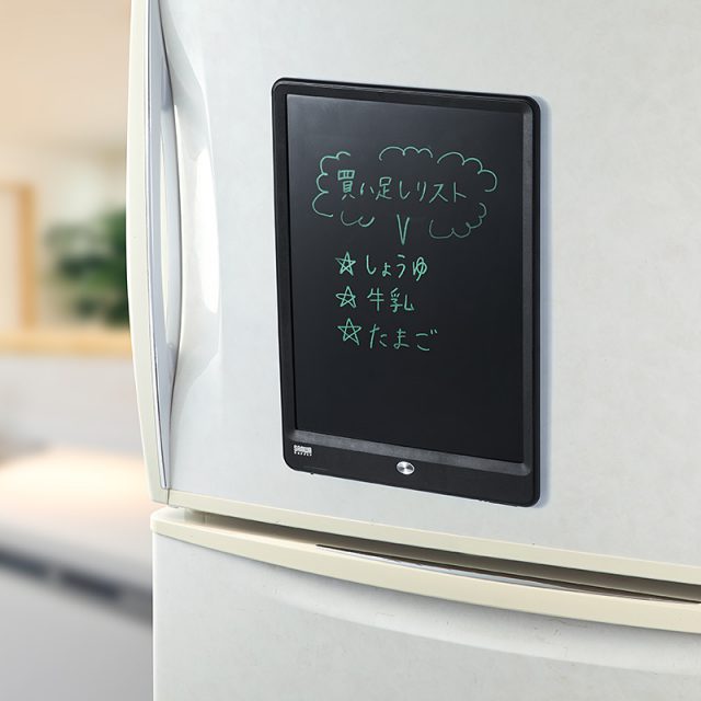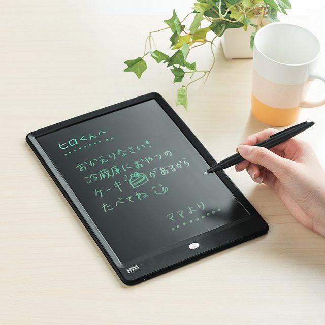 付属の専用ペンを使用することで、繰り返し書き消しできる電子メモパッドです。