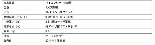 3合炊きマイコンジャー炊飯器 JR-XP2M31E(XK/ステンレスブラック)