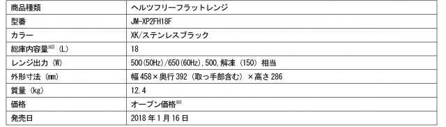 18Lヘルツフリーフラットレンジ JR-XP2FH18F(XK/ステンレスブラック)