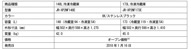 148L冷凍冷蔵庫 JR-XP2NF148E(XK/ステンレスブラック)