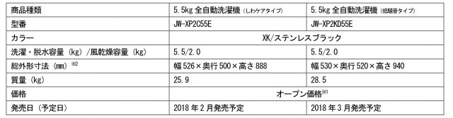 5.5kg全自動洗濯機 JR-XP2C55E(XK/ステンレスブラック)