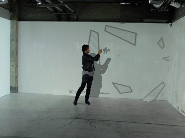マンガ表現を“読む”ものから“体感する”アートへ変換し、現代のアートのあり方を提案するプロジェクトがある。(株)ネイキッド、(株)コルク、エイベックス・ エンタテインメント(株)による共同企画のマンガマッピンだ。第一作は、自分が動くとマンガのような効果音文字が映し出される体験だ。歩くと「カッ、カッ」、しゃべると「ガヤガヤ」。手を叩くと「パン」。静かだと「シーン」という、動きに合った効果音が出ると共に、リンクしたマンガの擬音画が、プロジェクション・マッピングで、壁に、床に映し出される。