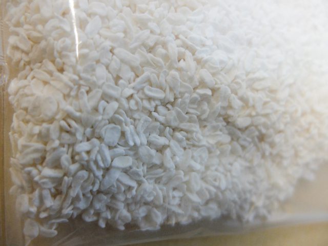 「とらひめ」は、米状加工食品ですが、原料が違いますので、米を炊くのとは違います。お米の場合は、米一合:150gに水一合:180gで炊きます。が、「とらひめ」は、「とらひめ」80gに対し水:300g。炊くというより、煮る感じです。そしてできあがった「とらひめ」に、仕上げ粉をまぜ、米に似せます。