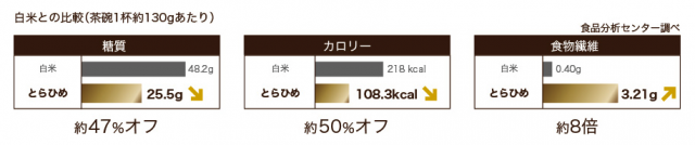 「とらひめ」の特長は、お米に比べ低糖、低カロリーであることことです。