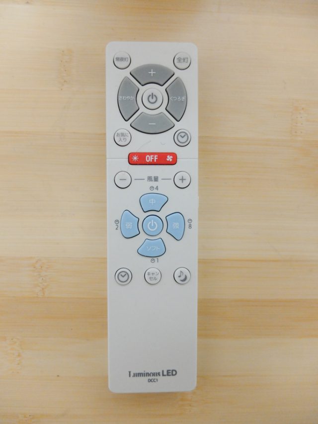 リモコンは、照明、サーキュレーターを別々に操る仕様。