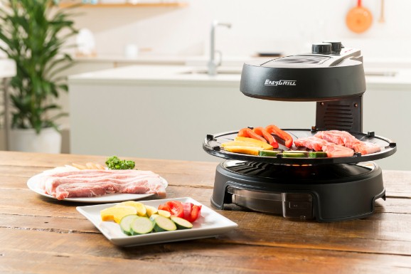 「Easy Grill」は、赤外線で「上から焼く卓上グリル」のため、おうちで焼肉をする時にネックになっていた、煙や油ハネを気にすることなく、ご家庭で焼肉屋さんやBBQ気分が味わえます。また、360°自動回転プレートなので、焼きムラが少なく、芯までふっくら、ジュワ~ッと肉汁溢れる美味しさが楽しめます。