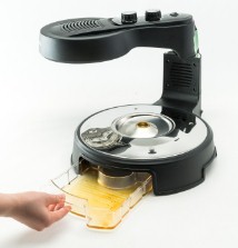 ヘッド(加熱部分)が左右60°に回転するので、食材をのせる時も、料理も取り出す時も便利な設計です。回転時には加熱が自動的に停止し、再び中央に戻ると加熱が始まる仕組みなので、安全です。