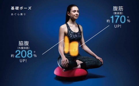 あぐら乗りポーズをするとウォーキング時に使用する筋肉量に比べ、 腹筋は約1.7倍、 脇腹は約2倍鍛えることができます
