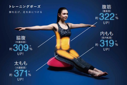 ※データはメーカー調べによる。 時速4kmでの歩行時を100%とした場合の各動作、 各筋の筋放電量の倍率を示す。■おすすめポーズ ランダムな動きに対してバランスをとることで、 体幹を中心とした筋肉を鍛えることができます。