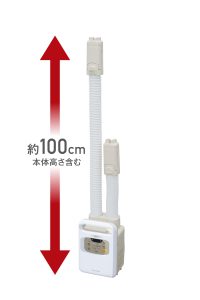 従来のモデルよりホースの長さを約1.5倍ふとん乾燥機カラリエFK-C2と比較して。に延長しているため、ベッドサイドからの使用や高さのあるベビーベッドにも適応し、2本のノズルにより広範囲に温風が行き渡ります。