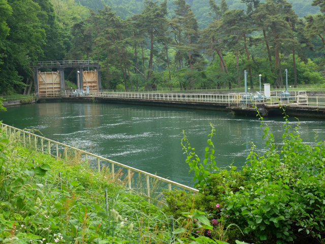 それ以外の水は、利根川に流されます。水利の関係で、河川環境を維持するための最低量(河川維持流量)は決まっており、魚道に0.7トン/秒、本流 3.5トン/秒。利根川は、最低でも常に4.2トン/秒が流れているわけです。冬場とか、47トン/秒を下回る量になる場合もありますが、坂東太郎の異名を持つ利根川だけあって水量は豊富で、夏場の大雨や台風のあとだと100トン / 秒レベルだそうです。