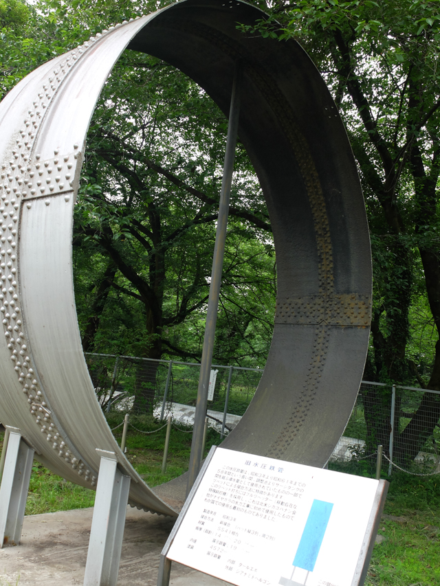 このサージタンクは、建設時期とも大きな関わり合いを保ちます。調整池から発電所までは「水圧鋼管」でつながれています。が、昭和3年の当時、この鋼管に十分な厚みを持たせることができなかったそうです。つまり鋼管が水圧堪えられない。このために、サージタンクが必要だったそうです。