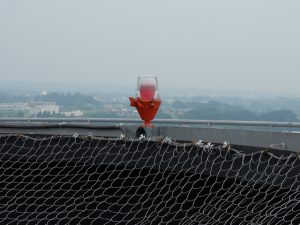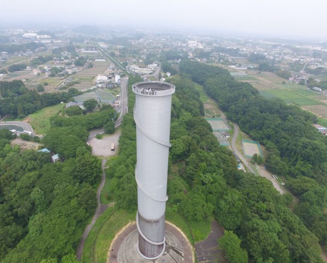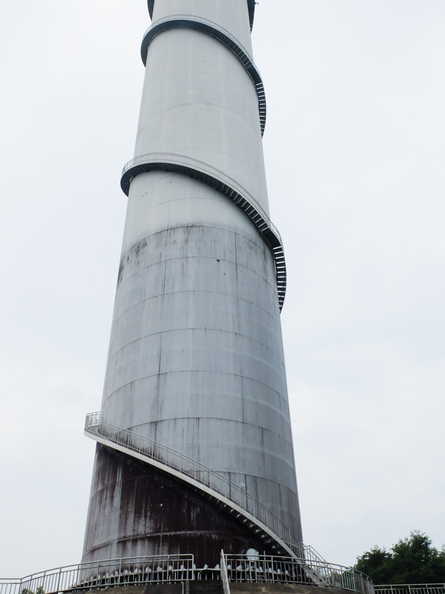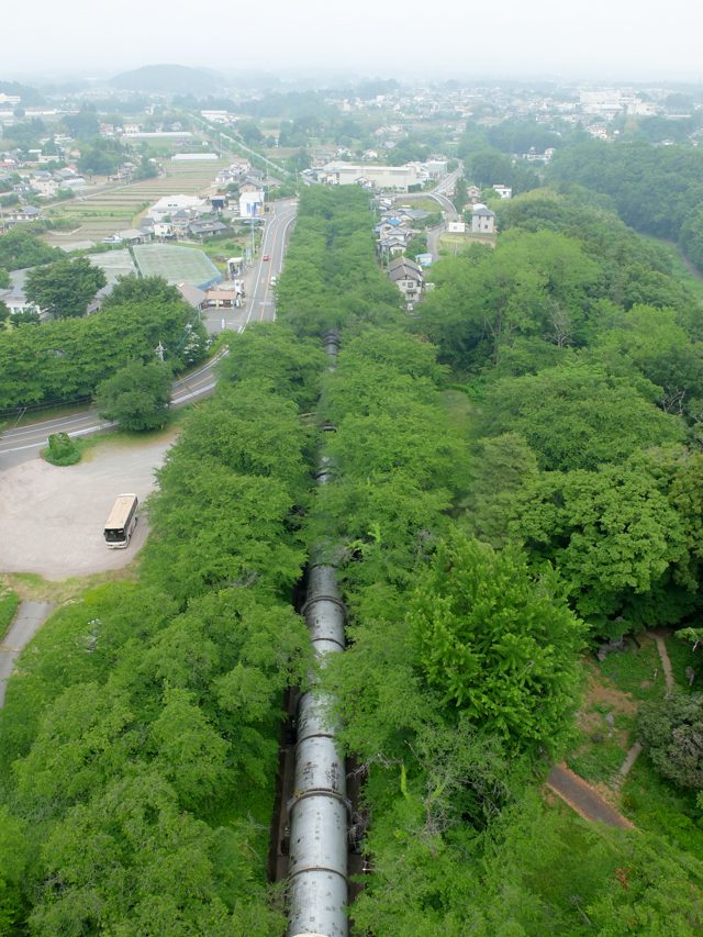 今回、このサージタンクを登らせてくれると言うので、物見高い私は登りました。外階段、438段。東京タワーの大展望台(150m)の外階段が約600段ですから、かなりのものです。その日は霞がかかり、見晴らしは悪かったのですが、汗ばんだ体に、風が心地よく、普段見られない景色に良い気分でした。晴れると両毛三山に浅間山、遠くは富士山なども見え、絶景だそうです。