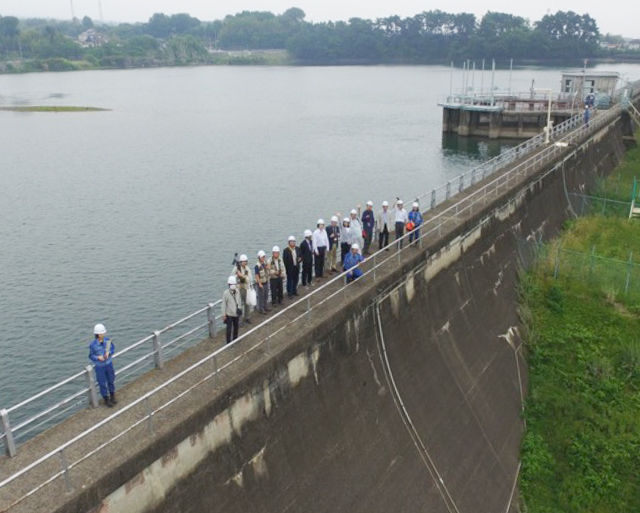 真壁ダム 天端にて。(ドローン撮影)
