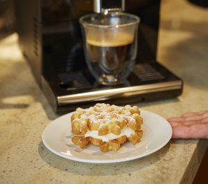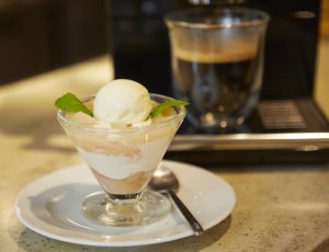“コーヒー豆×季節のデザートを楽しもう!” 自分の好きなコーヒー豆を選び、その都度季節や気分にあったコーヒー豆をチョイスできるのも、デロンギの全自動コーヒーマシンならでは。例えば、アラビカ種メインのブレンド豆を選び、香りとコーヒーの味わい余韻が続く、「Doppio+(ドッピオ プラス)」メニューで淹れた1杯には、柑橘系や乳製品を使ったこの時期ならではのデザートをおすすめします。例えば、オレンジピールをきかせ、 リコッタチーズと生クリームを雪の結晶型生地でサンドイッチした、イタリア・シチリアの伝統菓子“バーチョ”や、リキュールとレモンを隠し味にした“桃のコンポート”などはいかがでしょうか。
