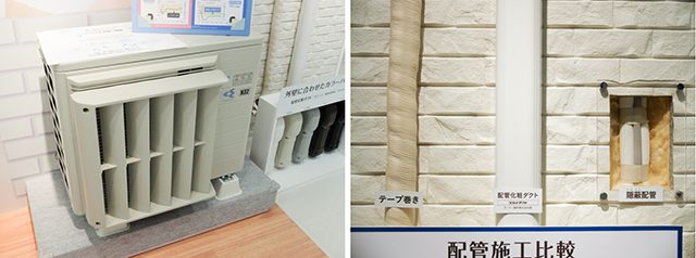 右)配管カバー。外観も違うが、耐久性もあがり、トラブルも少なくなる。