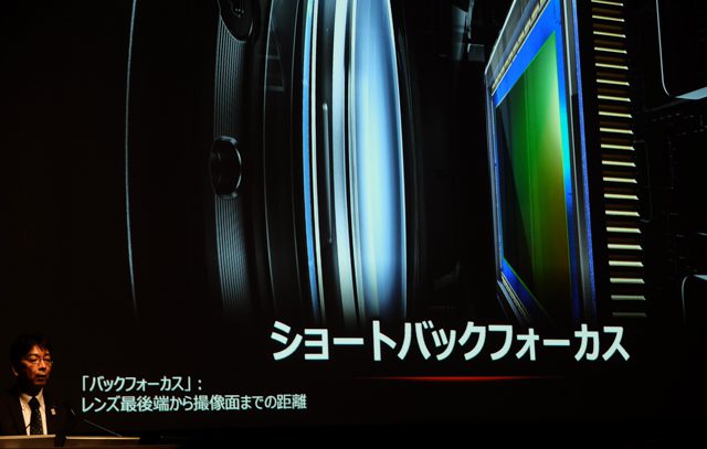 発表会では、ショートバックフォーカス(レンズ最後端から撮像面までの距離が短い)と表現されていました。