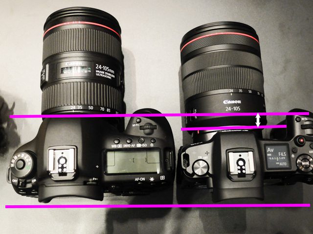 左)一眼レフ、右)ミラーレス(EOS R)、レンズは共通。