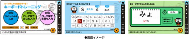 さらに、今回新たにキーボードトレーニング機能この機能には使用頻度の高い語彙を抽出するため、国立国語研究所「現代日本語書き言葉均衡コーパス」(BCCWJ)を使用。を搭載。キーボードを初めて使う方でも、ローマ字入力などのタイピングをゲーム感覚で楽しみながら練習できます。