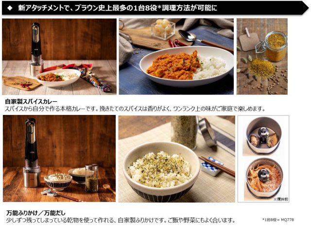 現代の共働き世帯の増加に伴い、より進化した時短調理のニーズに合わせ、“徹底的に使いやすく” “パワフルで確実な仕上がり”をコンセプトに、当シリーズには“挽く(グラインド)”機能を新たに導入。さらに業界唯一のスマートスピードテクノロジーも搭載したモデルになっています。ハンドブレンダー開発50年以上の歴史を持つブラウンの技術が踏襲された新シリーズとなります。