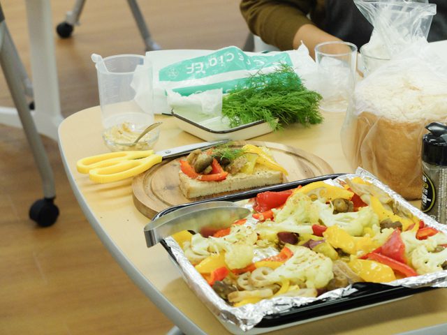 調理と言っても作るモノは「タルティーヌ」。フランス式オープンサンドウィッチですから、いろいろのせて食べようというわけです。