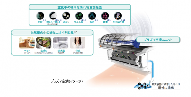●空気中の汚れ物質を除去、嫌な生活臭も取り去る「プラズマ空清」