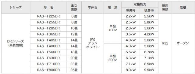 市場導入時の店頭想定価格(税抜)は、以下の通り。○F225DR:21万円前後、○F255DR:22万円前後、○F285DR:23万円前後、○F365DR: 24万円前後、○F405DR:25万円前後、○F406DR:25万円前後、○F566DR:27万円前後、○F636DR:29万円前後、○F716DR:31万円前後、○F806DR:33万円前後