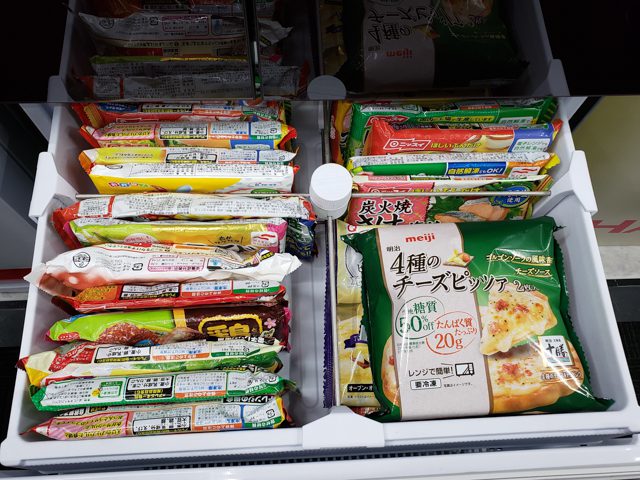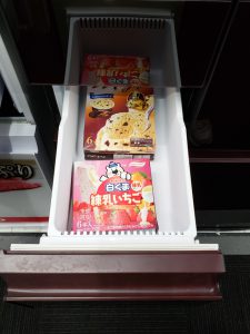 ただ、大きいだけだと、使い残しが出やすいので、メインの冷凍室は3段の引き出し付き、1段目は深さ:15cm。で四切り名人(「仕切り」の洒落)付き。市販の冷凍食品にもピッタリのサイズですから、一番重宝します。