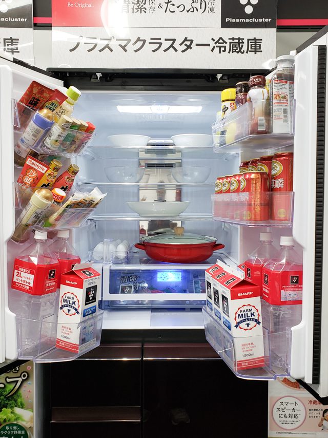 1つは、「液晶」と共にシャープの代名詞である「プラズマクラスター」です。冷蔵庫内でも黴菌が繁殖するのは、ご存じだと思いますが、プラズマクラスターイオンは、これらをやっつけることができます。その上、ニオイもしなくなります。食品ですから清潔を旨とするのは当たり前ですが、それに対する強力な助っ人です。