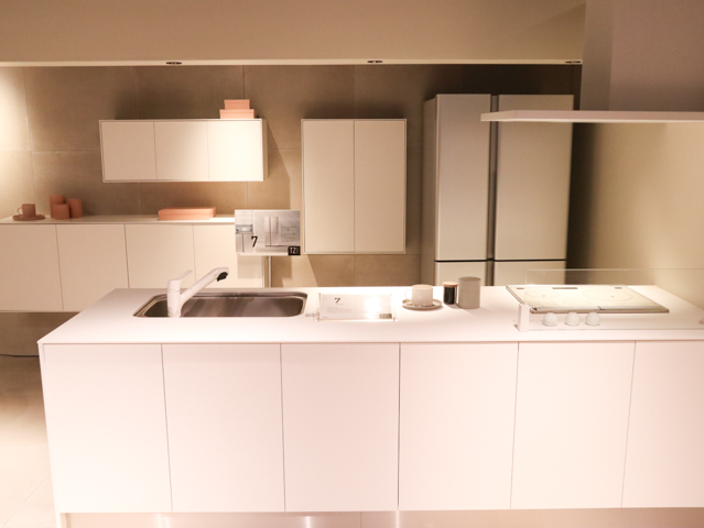 オープンキッチンの特長として、キッチンの逆側に、食品棚、食器棚、家電置き場などを持ち、冷蔵庫もそこにはめ込まれます。ですから、今までのように、幅制約は余りありません。むしろセンスが良い食器棚のように、その空間に調和する方がいいですし、ユーザー調査でも、83.1%の人がそう答えています。
