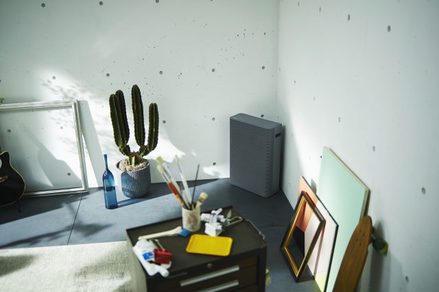 部屋の空気の状態を「ダスト・ニオイセンサー」で常にセンシングし、その状態をクリーンモニターのLED色で5段階表示します。また、PM2.5や臭い・全揮発性有機化合物(TVOC)のレベルを数値で示します。あわせて、脱臭・HEPAフィルターの残寿命をパーセント表示で確認することができ、プレフィルターのメンテナンス時期にはサインが点滅してお知らせします。●深澤氏による、製品の有用性を美しさに昇華したデザイン 機器の正面をすべて水平のルーバーで覆い、ひとつのテクスチャのように仕上げることで、 汚れた空気を強力に吸い込むことを示唆するとともに、部屋との整合性を高めたデザインです。また、特徴的な背面形状で部屋のコーナーにぴったり収まり、隅から部屋全体に空気を循環します。 さらにプレフィルターが簡単に取り外しやすい前面パネルを採用しています。