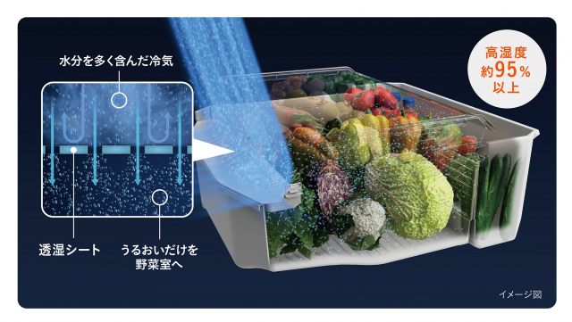 1週間新鮮に保存「もっと潤う 摘みたて野菜室」。